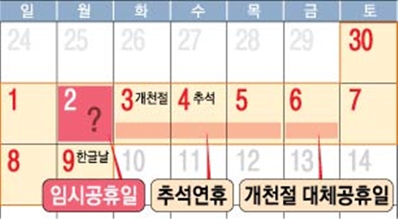 따라서 10월 10일 월요일이 대체공휴일이 됩니다!!! 10월은 일, 월요일 이틀 연휴가 두 번이나 겼는데요. 다만 이때까지 중간고사가 끝나지 않았다면 열심히 공부하시면 되겠네요.