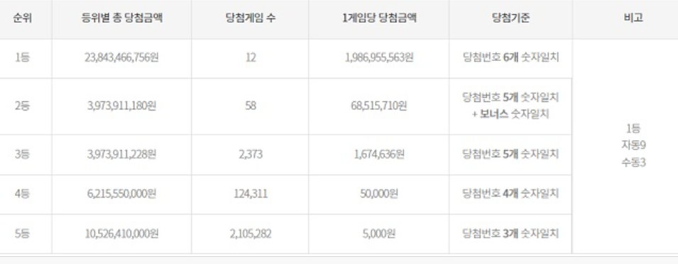 그리고 992회 로또 복권 1등 수상자 12명 중 9명이 자동구매로 당첨되었습니다. 다른 3명은 수동으로 6개 번호를 추측해서 맞혔습니다.