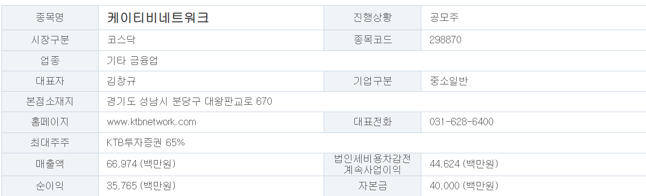 오늘 포스팅에서 소개드릴 종목은 12월의 두 번째 일반 공모주 청약 종목인 KTB 네트워크입니다.