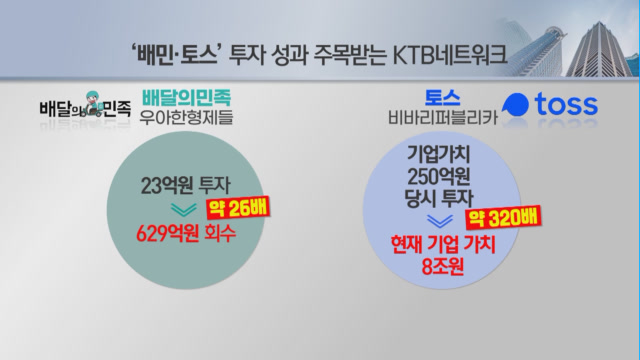 최근에 KTB네트워크가 투자하고 나서 자금을 회수했던 기업들을 보면 눈에 띄는 기업이 배달의 민족과 토스입니다. 배달의 민족은 금년도에 독일 회사로 인수가 될 때 자사 지분을 매각했는데요. 약 22억 원을 투자해서 628억 원으로 회수했습니다. 무려 28배의 수익을 남겼습니다.