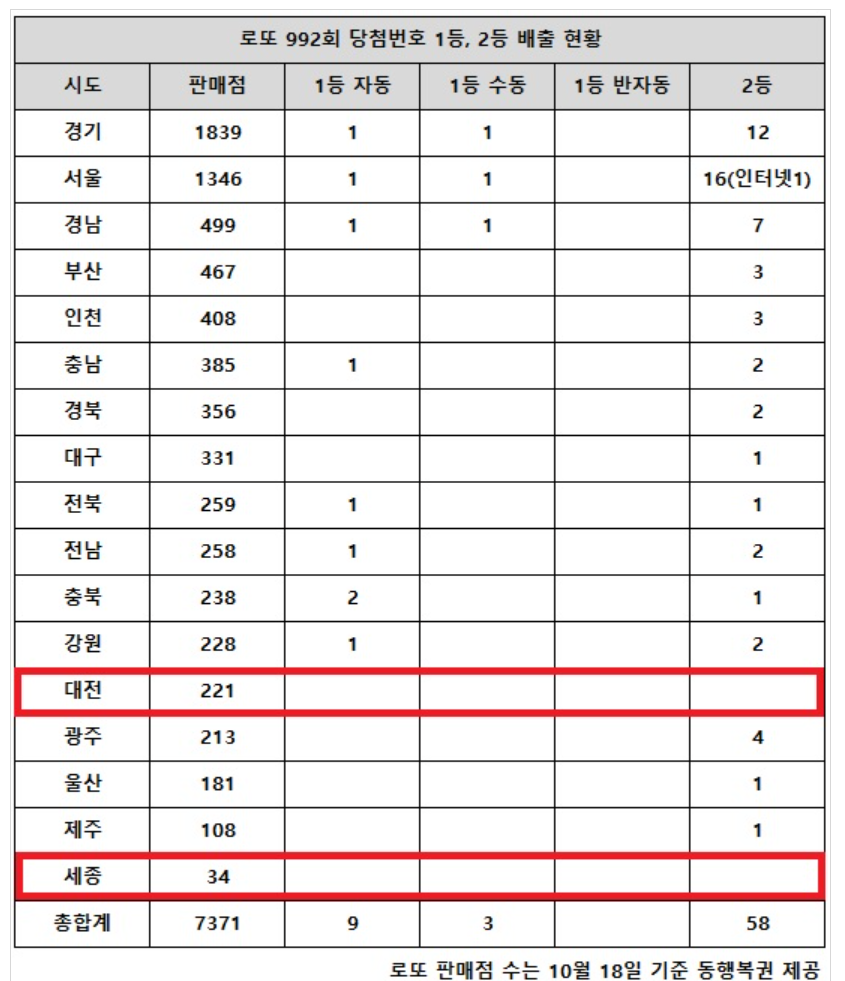 12월 4일에 추첨한 제992회 로또 당첨번호 및 로또 당첨 지역을 알려 드립니다.