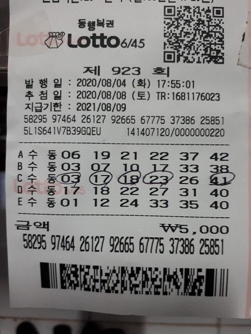 구매하신 복권에서 당첨번호를 검색한 결과 맞히셨다면 지급 개시일로부터 1년 이내에 당첨금을 받아야 합니다.