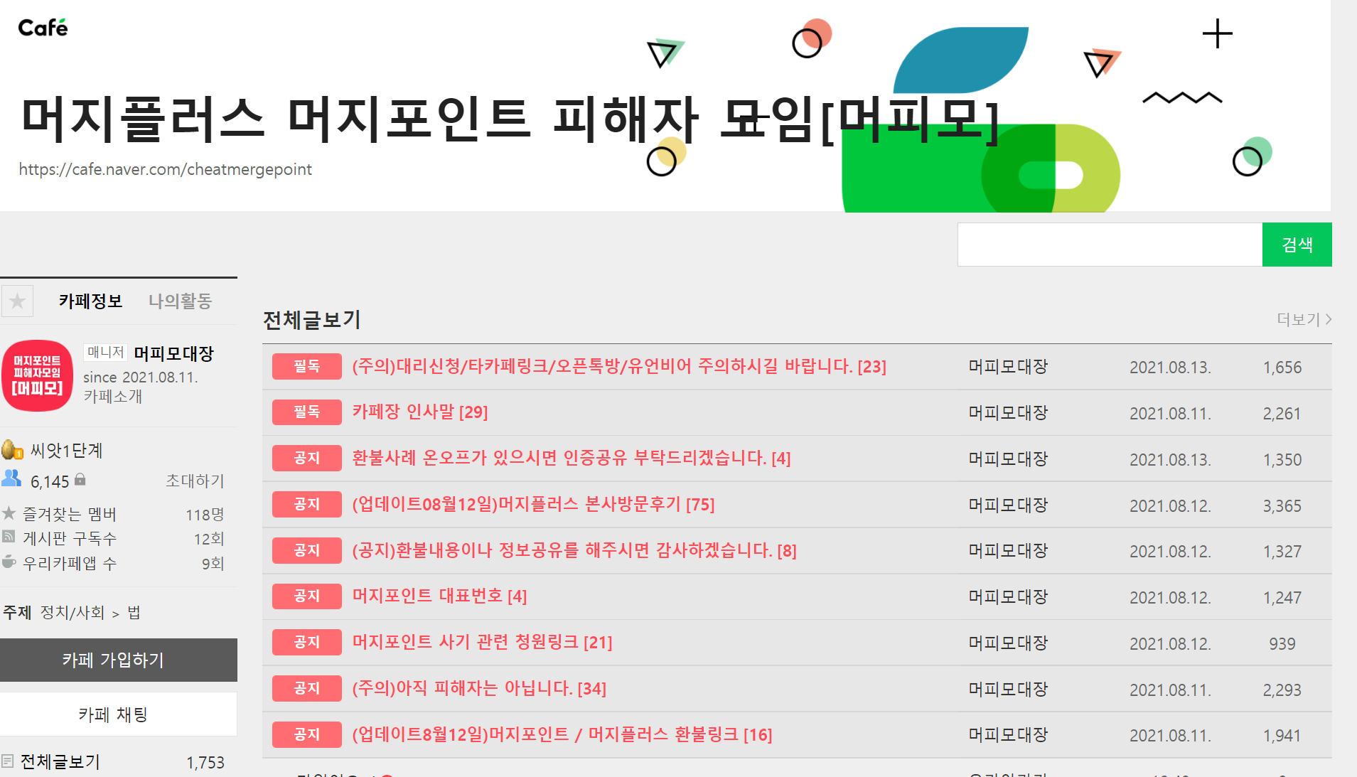 머지포인트 피해자 모임 까페 링크