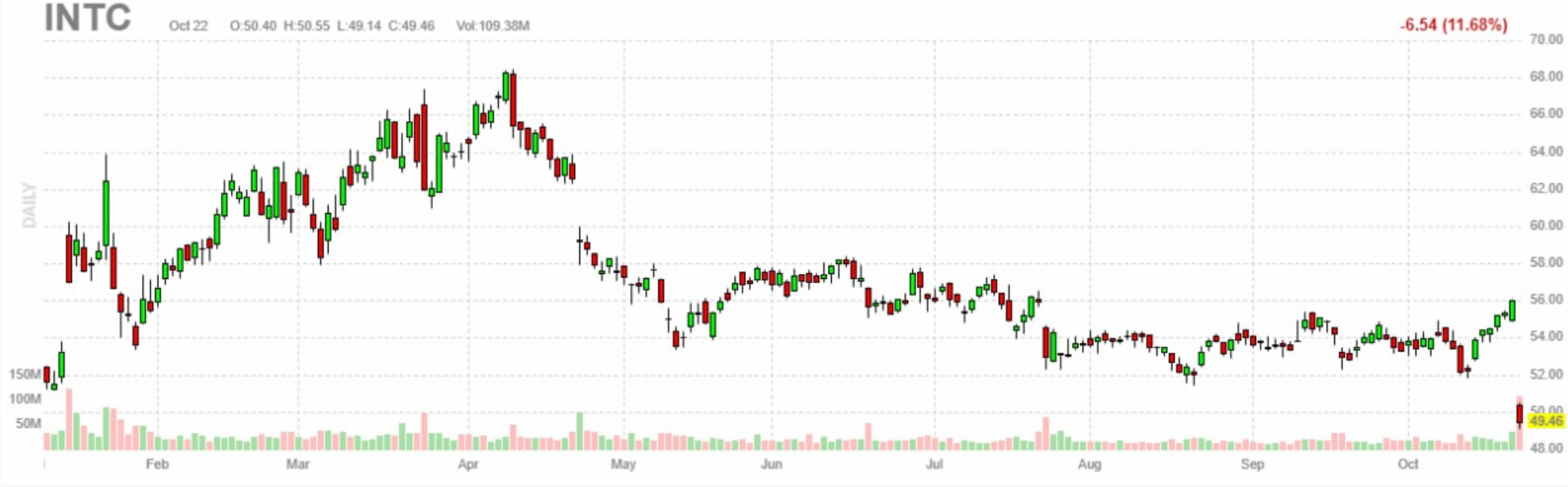 이번 분기 Intel의 실망스러운 실적이 4분기에도 계속될 것으로 예상되며, 주가는 다시 폭락했습니다.