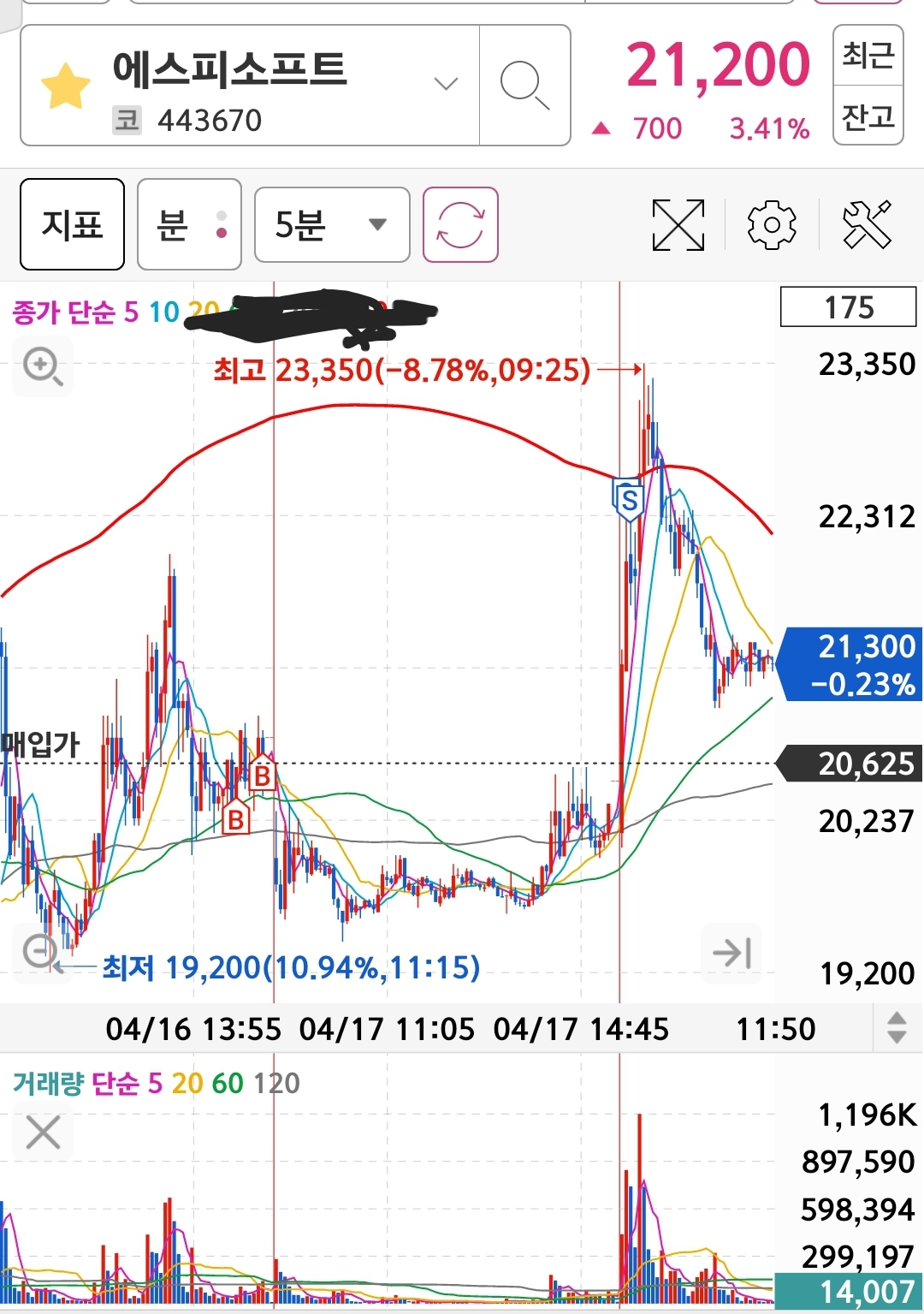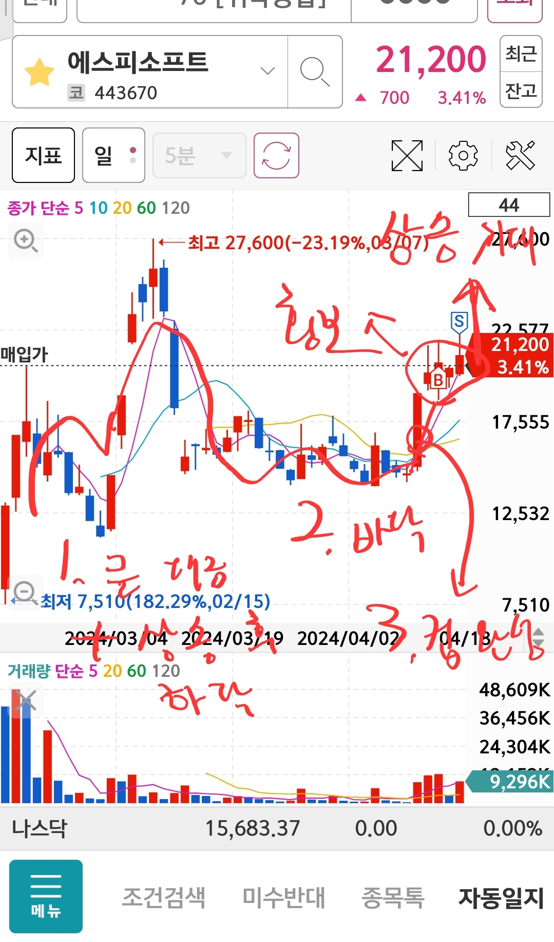 1. 에스피소프트 일봉 타점