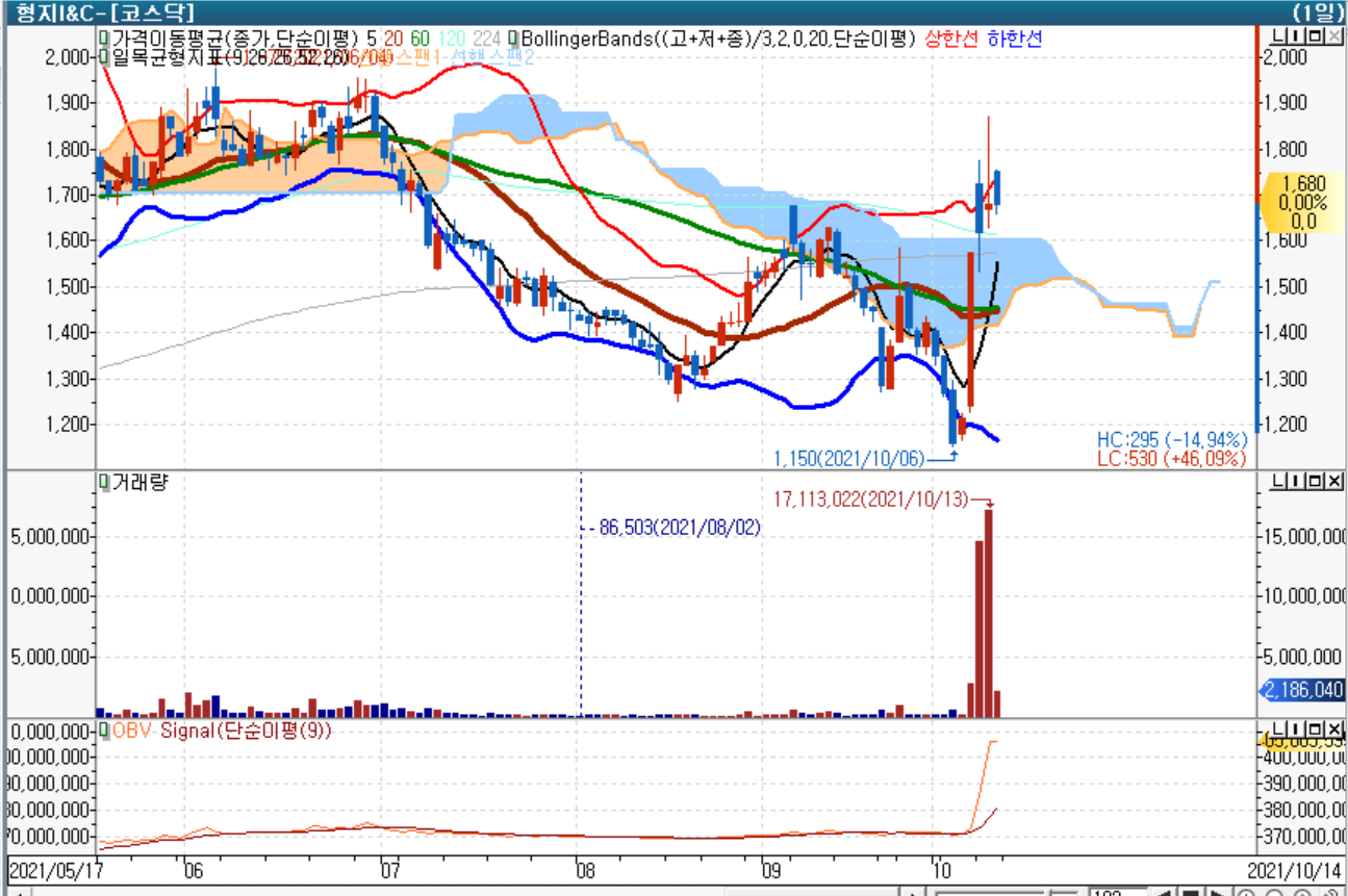 실제로 이재명 후보 관련주 대부분은 가격 조정이 이루어지고 있기 때문에 차트가 좋은 주식이 잘 없는데요. 형지I&C가 상한가에 도달하는 것을 보고 조금 놀랐습니다.
