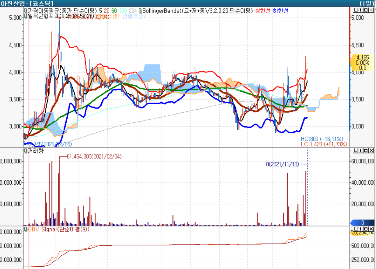그리고 아진산업 주가 차트는 이미 이런 상황을 반영한 것인지 좋은 모양을 만들면서 크게 튀었네요. 아진산업 주가는 너무 높아서 잡을 엄두가 안나는 자리입니다. 거래량을 보면 최근 매집세가 엄청 강했네요. 역시 세력은 가장 먼저 움직이고, 돈이 가장 빠릅니다. 제 귀에 "요즘 마그네슘이 부족하다더라"는 소문이 들어오기도 전에 세력은 이미 마그네슘 관련주를 갖고 놀고 있었네요. 아진산업 주가가 엄청 높은 상태인데 여기서 볼린저 밴드를 타고 5천원 대까지 갈 지 아니면 하락할지가 궁금합니다.