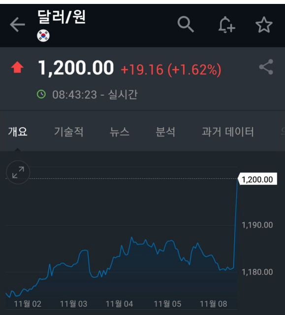 환율이 급등해 1,200원을 돌파한 상황이 체크되었습니다. 이것 때문에 당황하신 분들이 많았을텐데요. 이 환율 급등은 오류라고 합니다. 그래도 변동성이 심한 국내 증시는 이로 인해서도 외인 수급을 포함 전체적인 시장 수급이 불안정하게 변할 수 있으니 변동성에 주의해야 합니다.