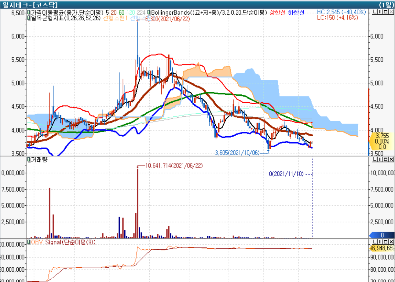 오늘 마그네슘 관련주 차트를 보면 일지테크 주가는 너무 아래에 있고 하락세네요. 게다가 구름대 아래에서 역배열로 하락하는 모양입니다. 일지테크 주가 추세가 턴한다고 해도 고점까지 거리가 너무 멀어서 저라면 안잡을 것 같습니다.