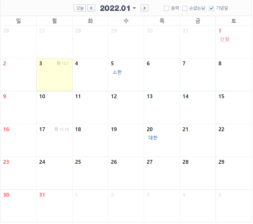 지난 두 달 휴일 없는 날들를 보내느라 참 힘들었는데 2022년 1월 1일도 토요일이라서 참 아쉬웠죠. 1월의 첫날은 아쉽게도 토요일이지만 설 연휴 첫째 날은 너무 다행히도 월요일입니다!!!