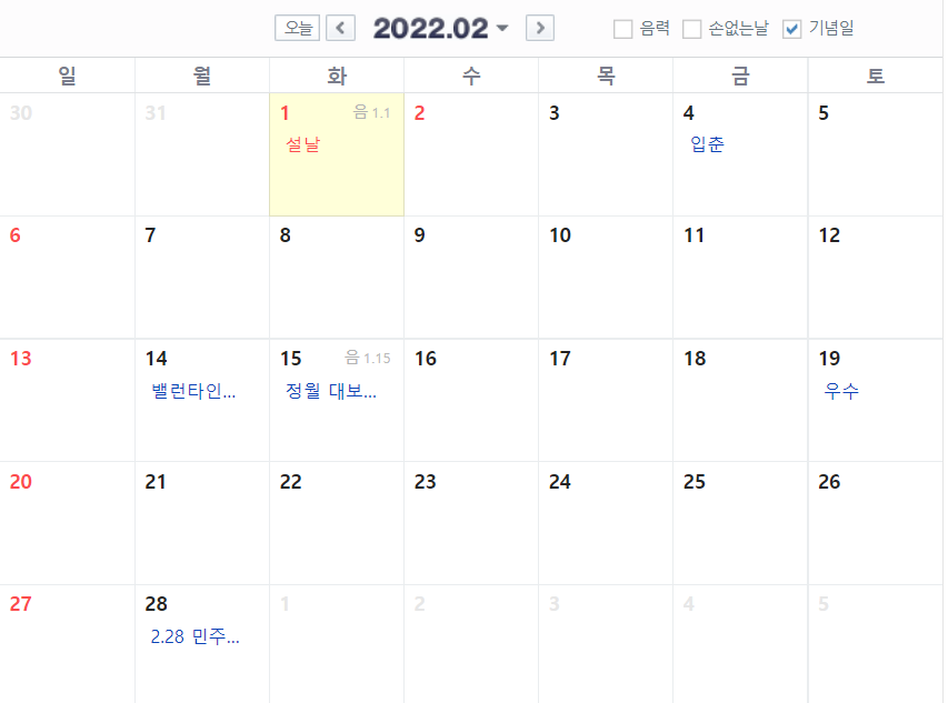 지난 두 달 휴일 없는 날들를 보내느라 참 힘들었는데 2022년 1월 1일도 토요일이라서 참 아쉬웠죠. 1월의 첫날은 아쉽게도 토요일이지만 설 연휴 첫째 날은 너무 다행히도 월요일입니다!!!