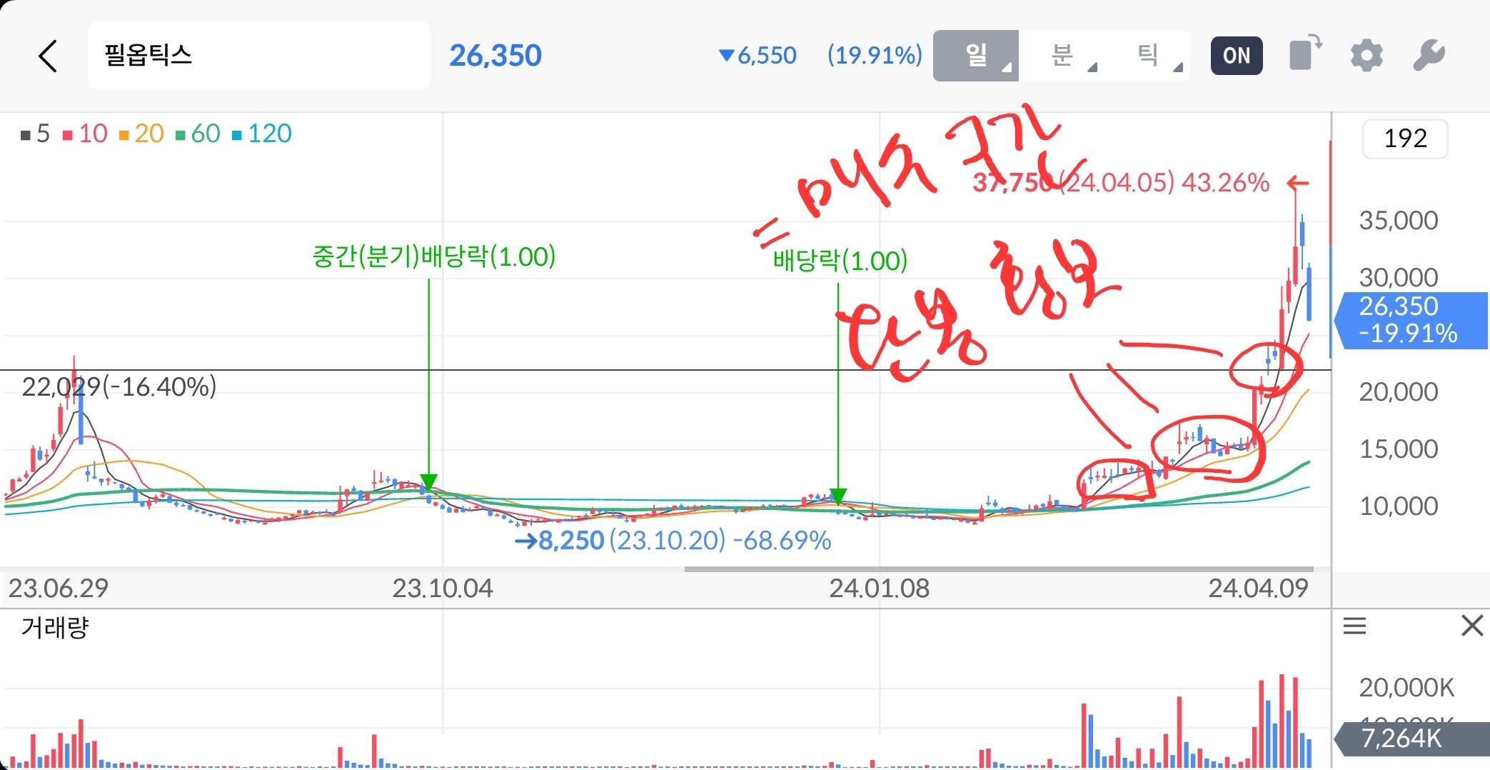 물론 대한전선은 위에 물린 구간, 20/60 데드크로스 구간이 워낙 길어서 쉽지는 않을 듯.